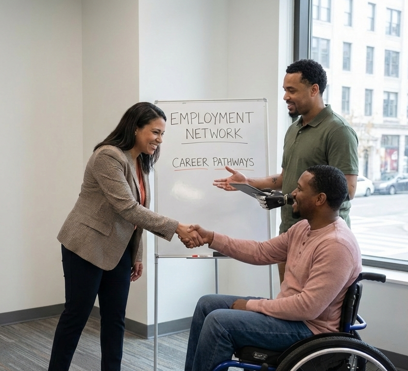 Integrated employment services with benefits counseling to support informed participation and financial stability.